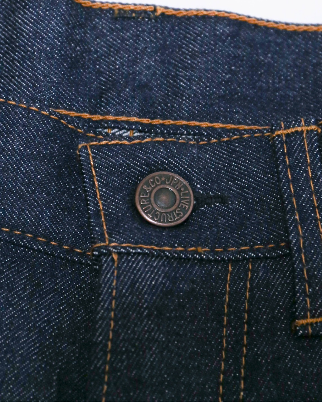 1970年代前半のヴィンテージリーバイスのブーツカット品番517のディテールや縫製仕様、パターンを元に製作したブーツカットジーンズ。履き込むことで、綺麗な縦落ちと共に、迫力のあるアタリ感が魅力の通称Big E期の生地を指標に開発した約14オンスのセルヴッチ生地を使用しています。渡りのシャープさと、裾にかけキレイに広がるブーツカットシルエットが、スタイルの良さを引き立てます。時代背景を踏まえ、オールオレンジステッチで縫製箇所により綿糸とコア糸を使い分け、シンガーやユニオンスペシャルといったヴィンテージミシンを使用し、熟練の縫製師により、縫い上げています。