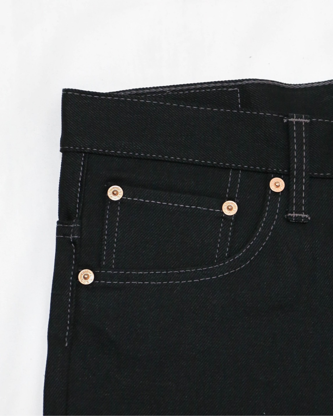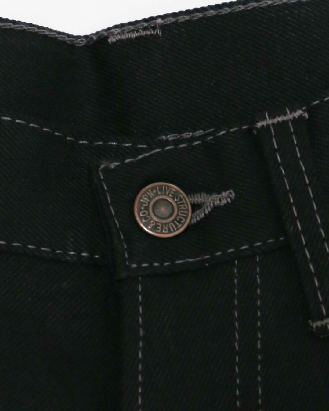 1970年代前半のヴィンテージリーバイスのブーツカット品番517のディテールや縫製仕様、パターンを元に製作したブーツカットのブラックジーンズ。生地は、1990年代のサルファーブラック(通称 後染め)の生地を指標に制作した約14オンスの生地を使用。渡りのシャープさと、裾にかけキレイに広がるブーツカットシルエットが、スタイルの良さを引き立てます。時代背景を踏まえ、縫製箇所により綿糸とコア糸を使い分け、シンガーやユニオンスペシャルといったヴィンテージミシンを使用し、熟練の縫製師により、縫い上げています。
